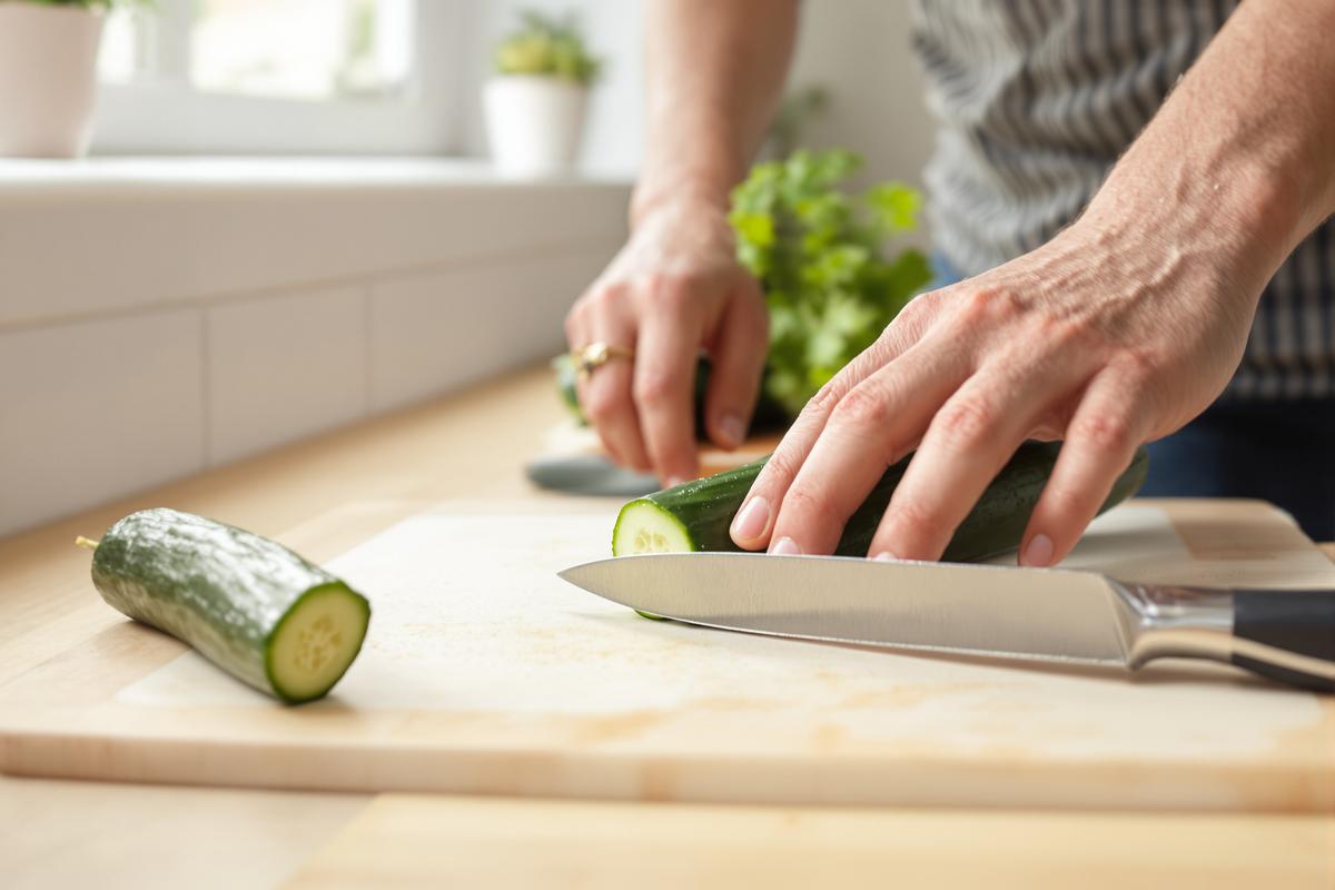 Viele machen es ganz automatisch: Du beginnst beim Schälen oder Schneiden an einem Ende der Gurke – meistens am Stielansatz – und ziehst das Messer von dort durch. Genau das kann die Bitterstoffe aus dem Ende in den Rest der Gurke verteilen.