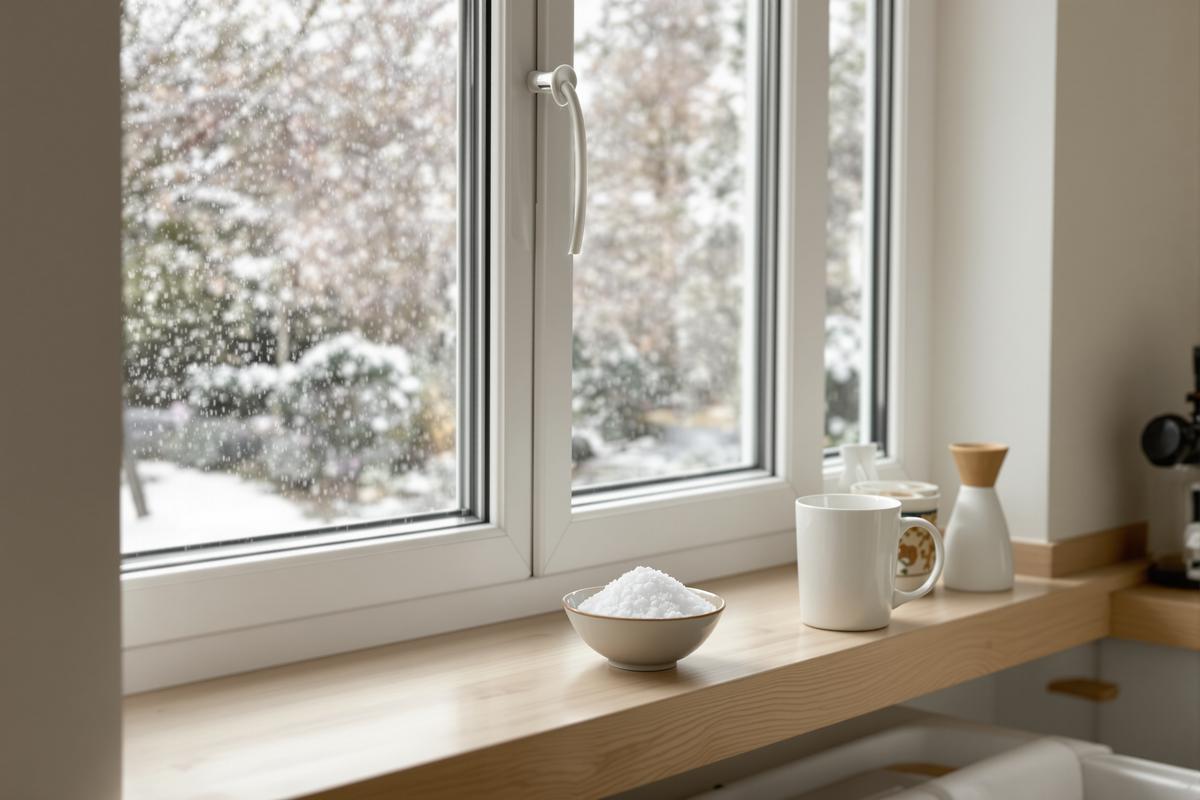 Salz ist hygroskopisch – das heißt, es zieht Feuchtigkeit aus der Luft. Dieses natürliche Verhalten lässt sich clever nutzen, um die Luftfeuchtigkeit in Fensternähe zu senken und so beschlagene Scheiben zu verhindern.